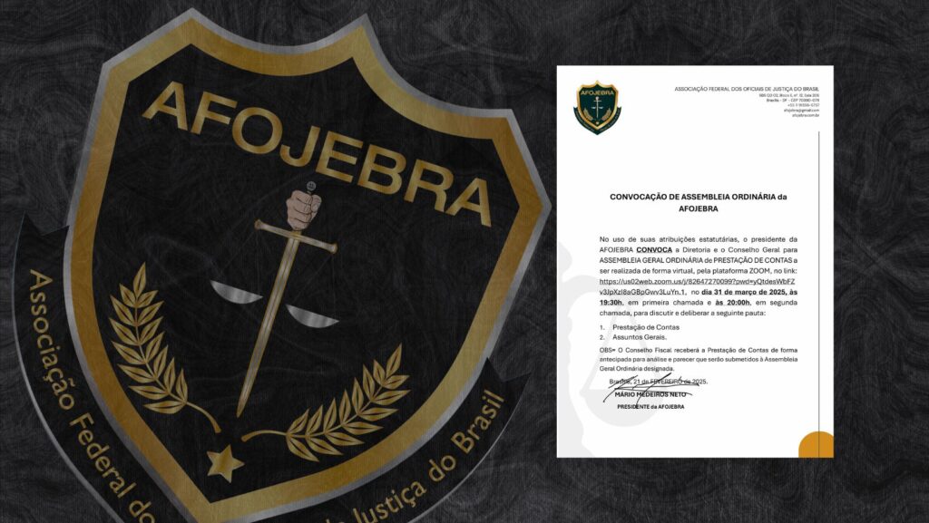 AFOJEBRAO presidente da Associação Federal dos Oficiais de Justiça do Brasil (AFOJEBRA), Mário Medeiros Neto, publicou edital de convocação para a Assembleia Extraordinária da entidade. Leia a íntegra...