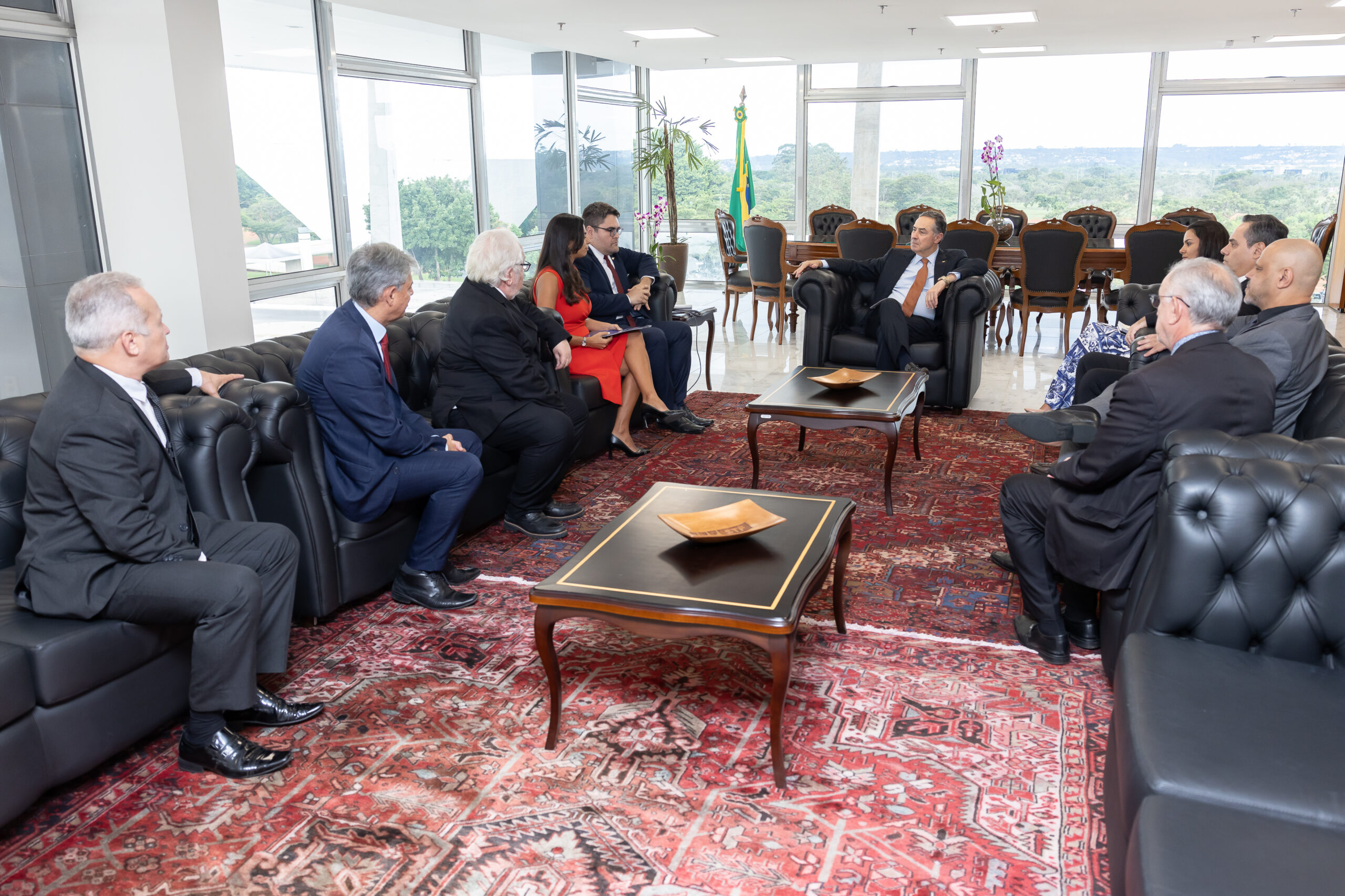 Dirigentes das três entidades nacionais representativas dos Oficiais de Justiça – Afojebra, Fenassojaf e Fesojus-BR, e da União Internacional dos Oficiais de Justiça (UIHJ), se reuniram, na tarde desta quinta-feira (21), com o presidente do Supremo Tribunal Federal, ministro Luís Roberto Barroso.
