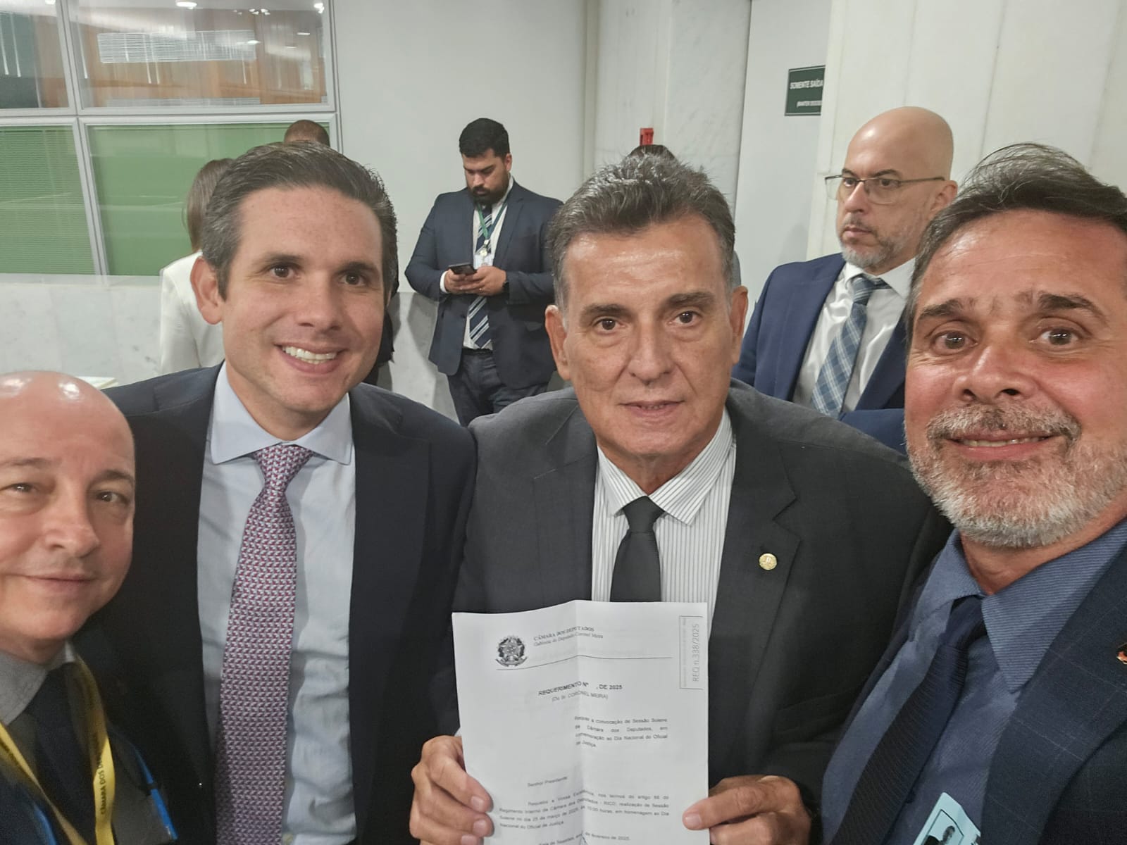 Durante a visita aos gabinetes, os representantes dos Oficiais de Justiça conseguiram o apoio do deputado federal Murilo Galdino e do deputado federal Sóstenes Cavalvante, que é líder do PL na câmara.